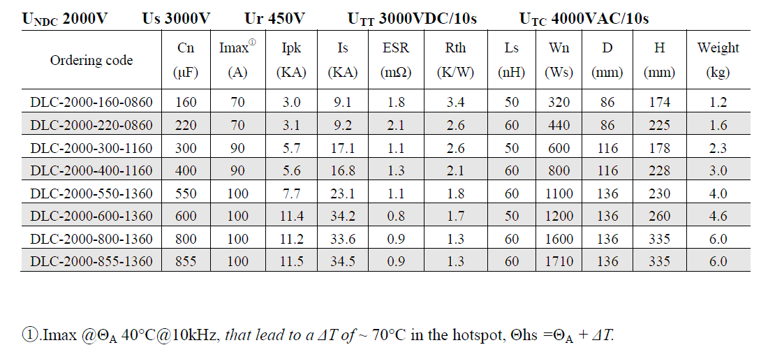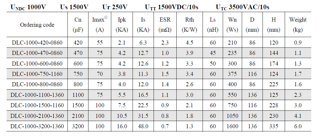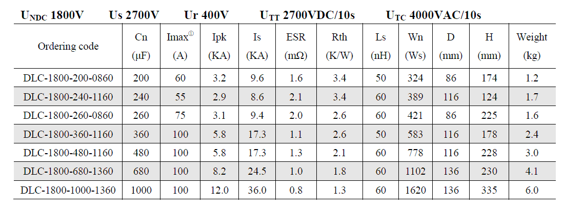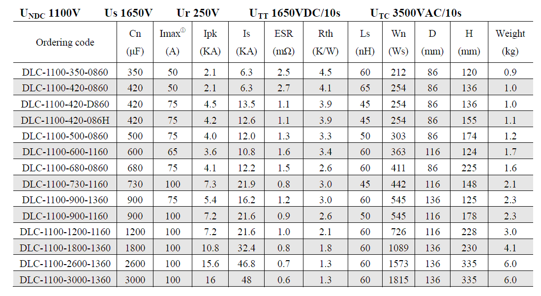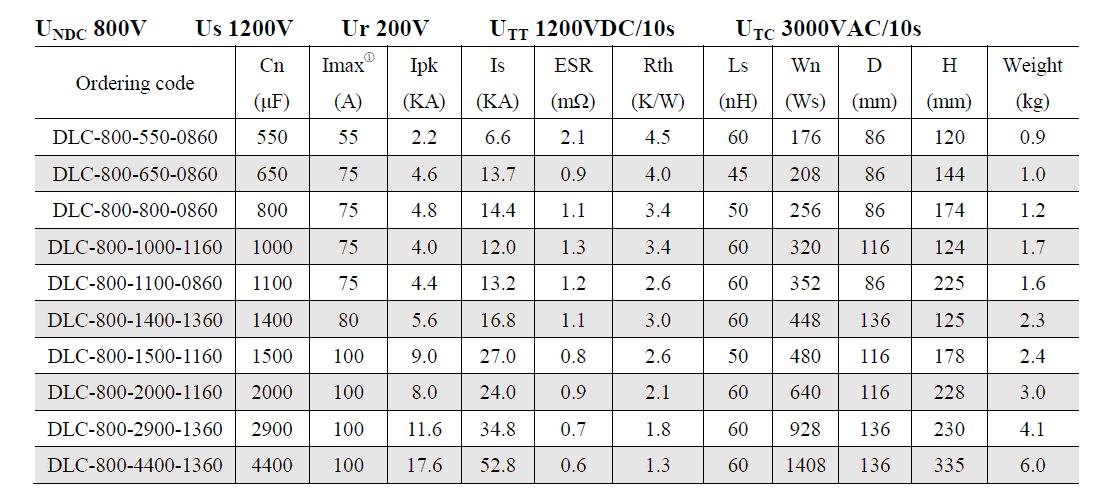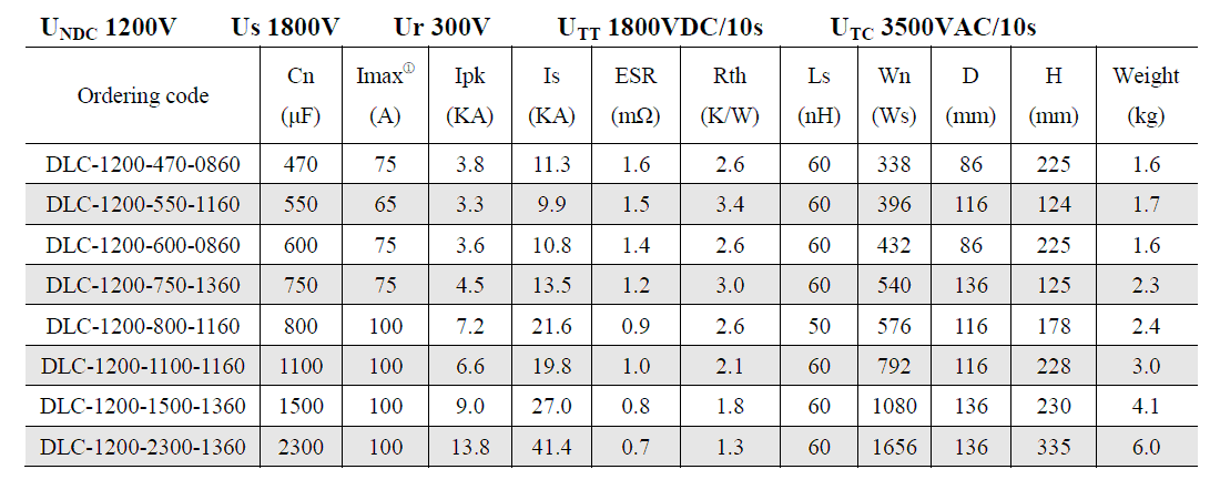 2、直流额定电压800VDC到2000VDC,容量0uf到4800uf;