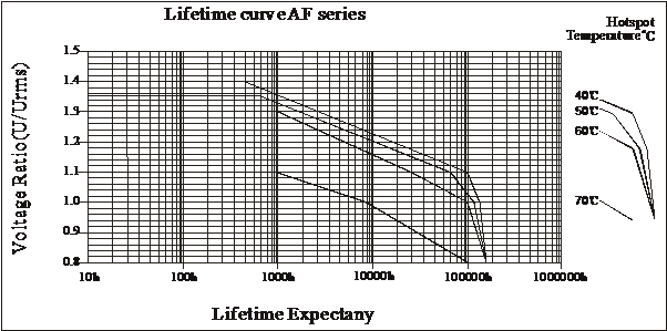 Lifetime (U) = LN x (Urated/Uworking)8 and Lifetime (Θ) = LN x 2(Θrated-Θworking)/7