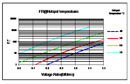 In fact, a FIT rate of 50 would mean, for example: “If 10,000 capacitors are operated simultaneously for 100,000 hours at rated voltage and with a hotspot temperature of no more than60°C, then out of this batch no more than 100 pcs may fail during the entire period.” Any period during which the hotspot temperature is lower than60°C, or the voltage is less than rated voltage, will contribute to a reduction of the 100 FIT.